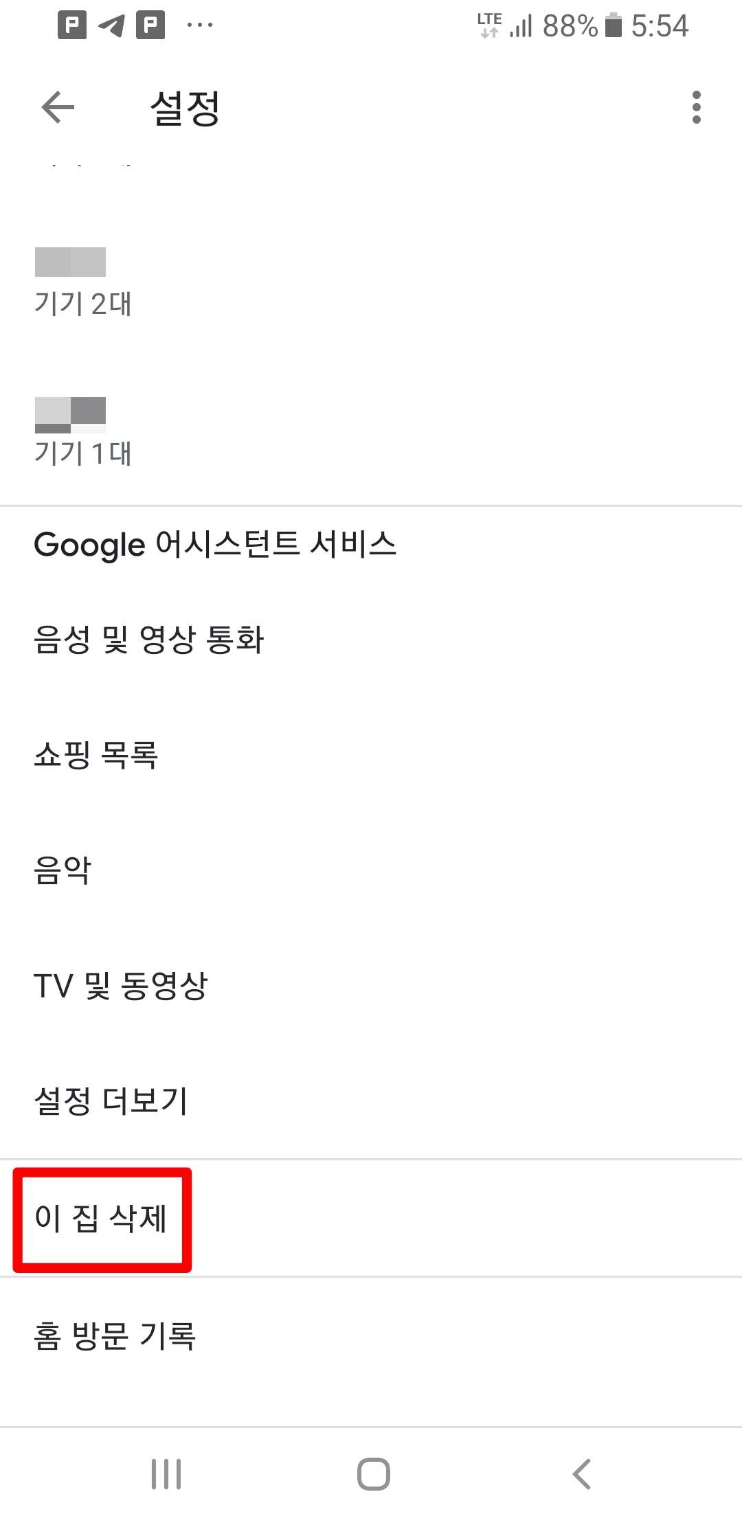 3. 재부팅 후 구글홈 앱 실행>설정>이 집 삭제>기기 및 앱 초기화
