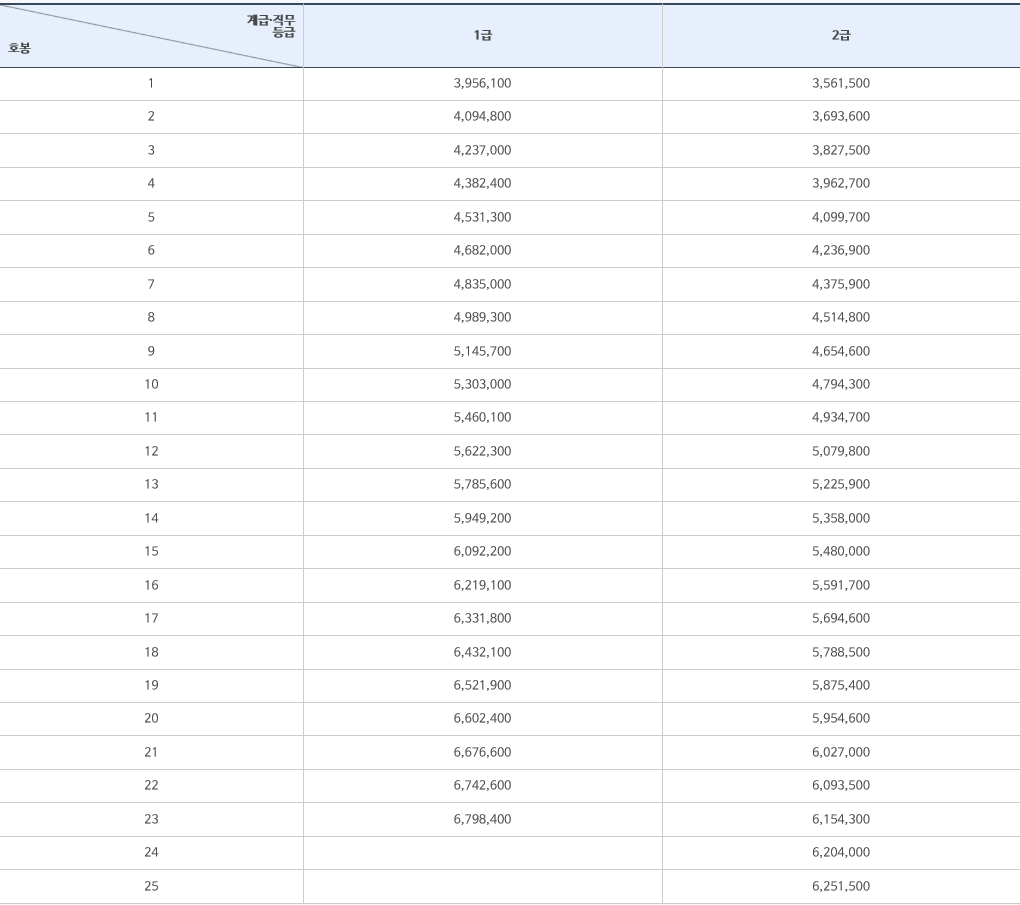 일반직공무원 봉급표