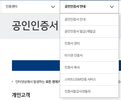 로그인을 한 다음 공인인증센터 > 인증서발급사전동의 메뉴로 이동해 동의신청을 해주시구요.