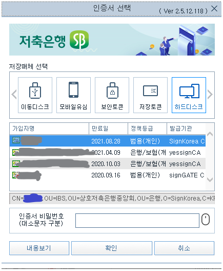 아마 아시는 분들도 계시겠지만 일부 저축은행에서는 범용공인인증서를 무료로 발급받아 사용할 수 있습니다. 저는 그동안 인천저축은행에서 발급한 범용공인인증서를 사용하고 있었는데요.