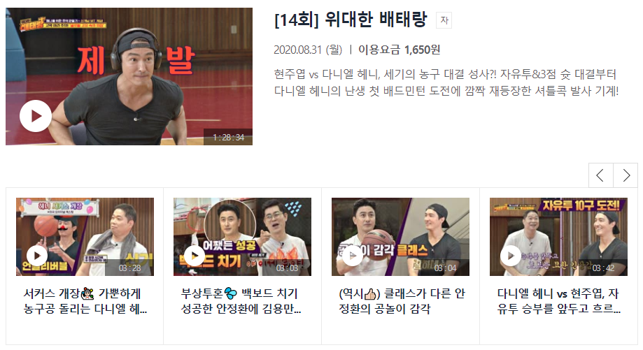 위대한 배태랑 말고도 jtbc에는 히든싱어, 팬텀싱어, 썰전, 님과함께 등 재미있는 인기 예능프로그램을 많이 제공하고 있습니다. 평소 jtbc 컨텐츠를 즐겨 보시는 분들이라면 1일이용권이나 30일 이용권 등 기간제 상품을 구매하셔서 자유롭게 이용하시는 것도 좋겠습니다.
