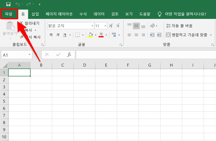 ▲ 카메라 기능을 쉽게 사용하기 위해 [빠른 실행 도구모음]으로 카메라 기능을 꺼내려고 합니다. 먼저 메뉴 좌측의 [파일]을 눌러줍니다.