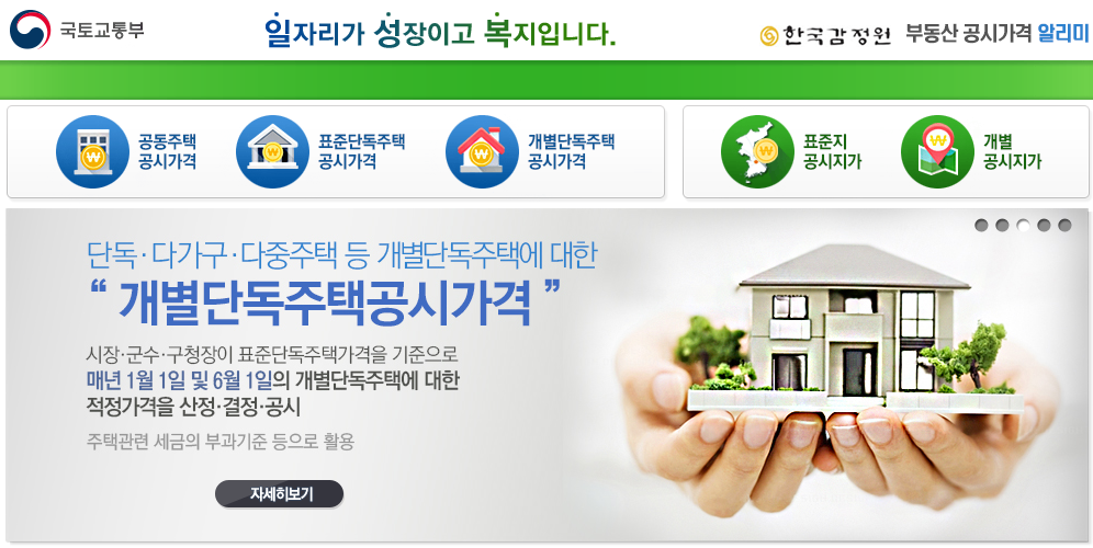 홈페이지를 통해서 알수 있는 공시가격은 개별단독주택, 표준단독주택, 공동주택의 공시가격을 각각 조회할 수 있습니다.