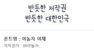 만약 마음에 든다고해서 아무 폰트나 설치해서 사용했다가는 추후에 사용료 지불을 요구당한다거나 저작권 문제로 골치아픈 일이 생기기도 합니다.