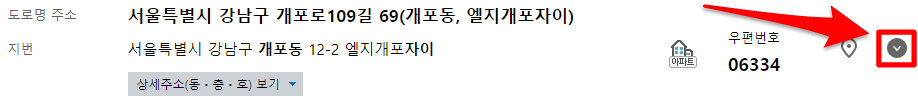 아래의 검색 결과 창에서 우측에 있는 화살표를 눌러보면 영문주소가 표시됩니다.