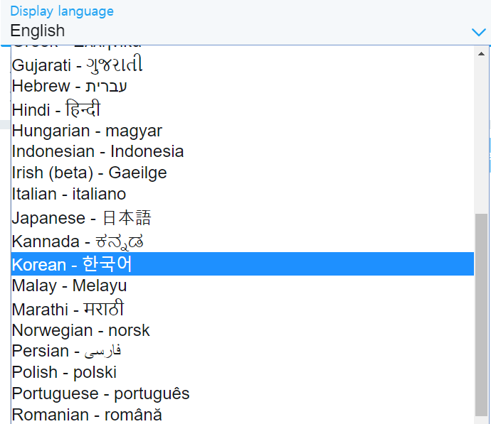 Setting - Account 하단 메뉴 중 Data and permissions - Display langauge 를 English 에서 한국어로 바꿔주면 됩니다.